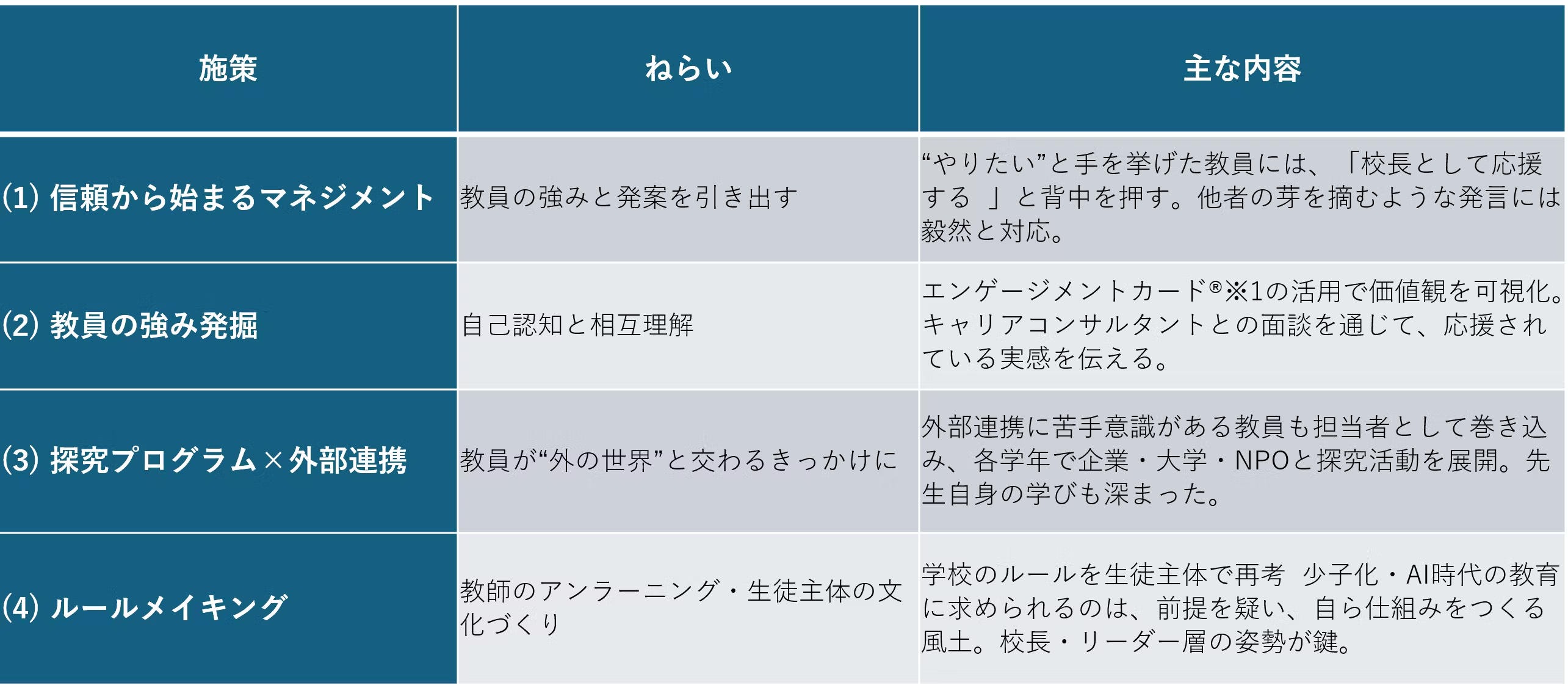 「学校は先生に投資している」というメッセージが、静かに、しかし確実に組織文化を変えていきました。