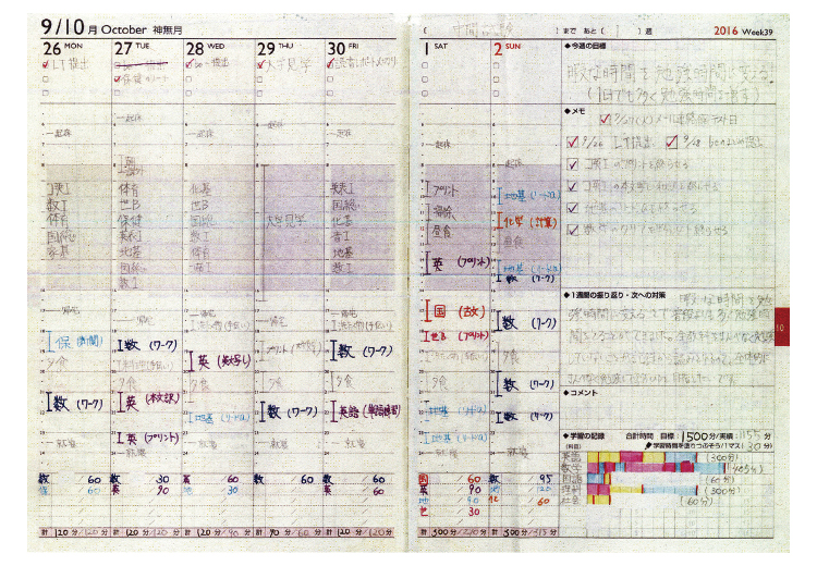 - ◆部活で重要な立場を任されたとき、手帳を使い、成績を上げようと決意しました。手帳を使っていくうちに、自発的に勉強するようになりました。